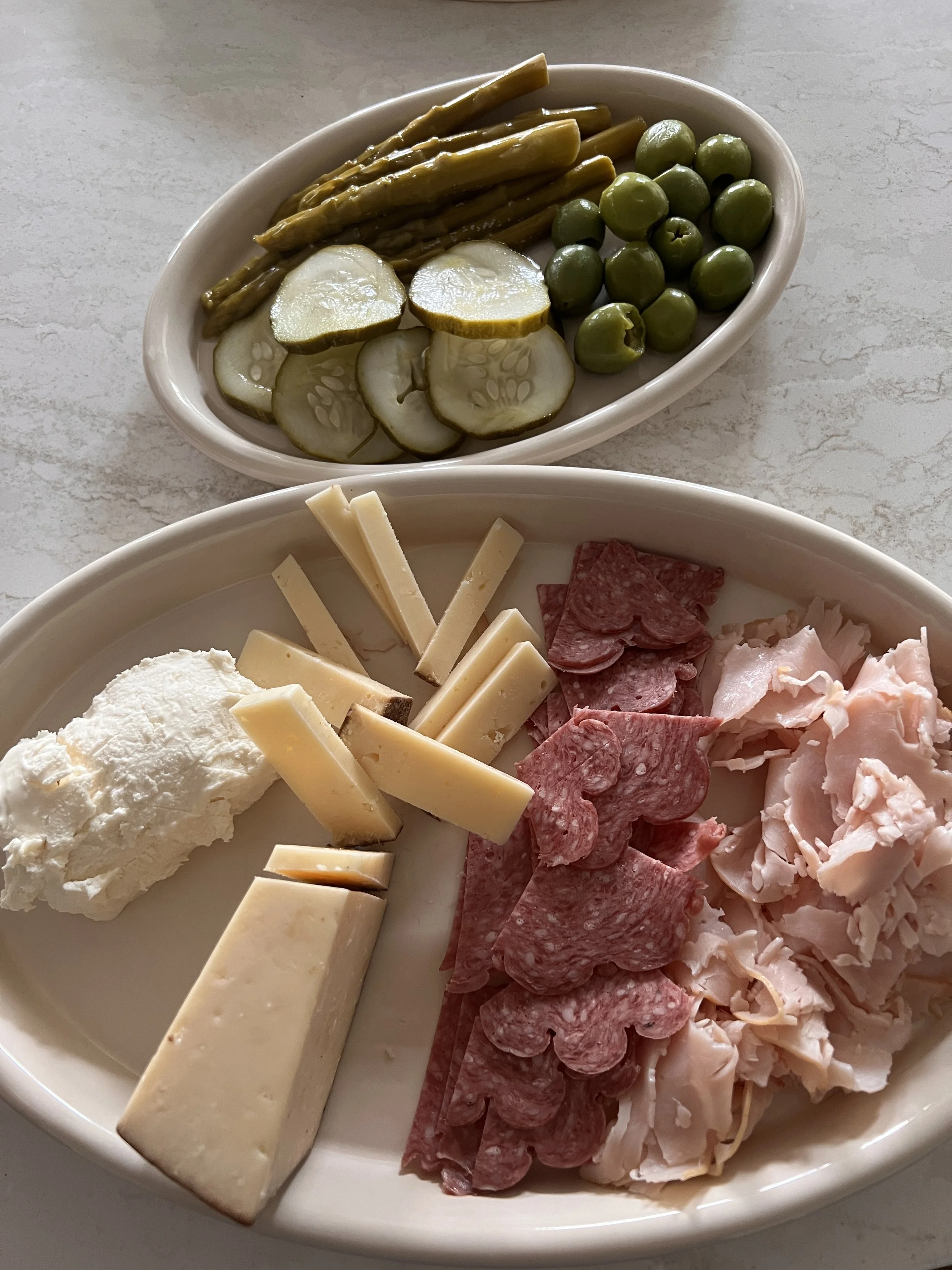 Fermented asparagus, cucumbers and olives + meat and cheese