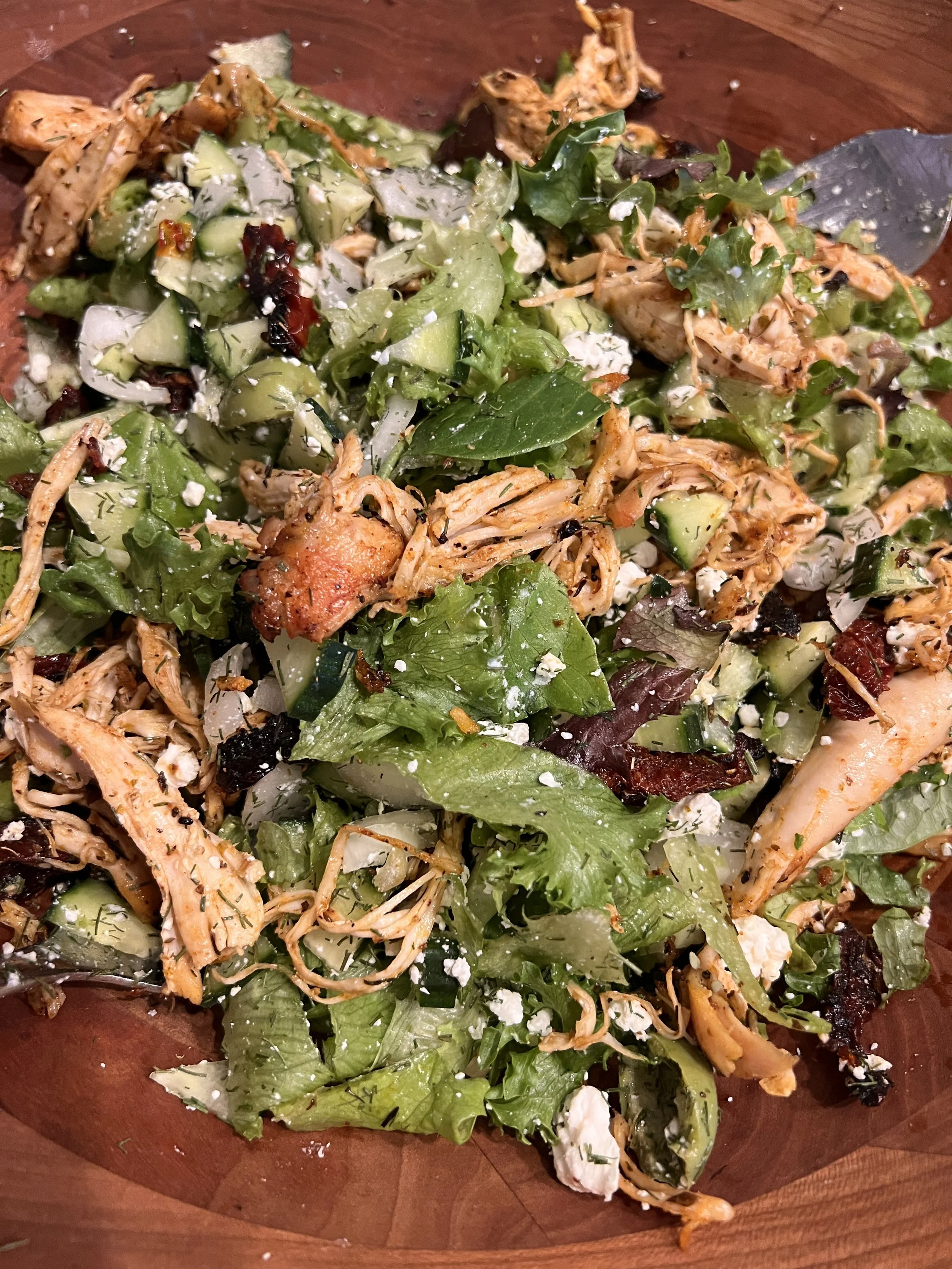 Greek salad + Sun-dried tomato chicken (recipe in K-Kitchen)